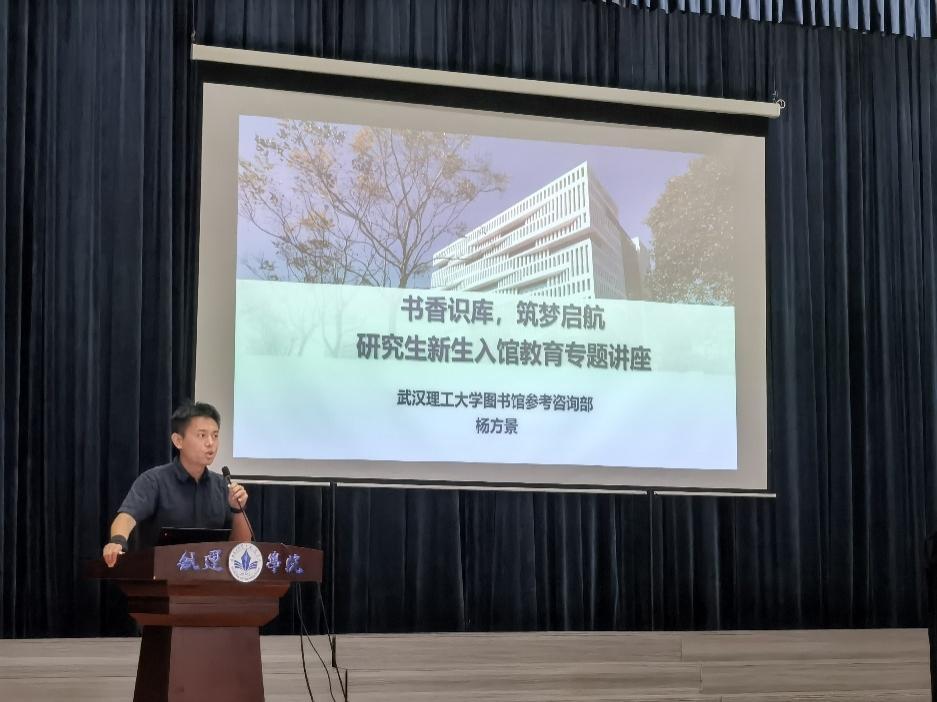 图书馆杨方景老师对我校图书馆数字资源的总体情况进行了详细介绍,对图书馆服务体系、规章制度、线上线下资源获取方式等进行了全方位讲解,并针对研究生常用的数据库检索方式进行了着重强调。讲解深入浅出,使研究生们更深入地认识了信息检索,提高了科学研究的基本能力。