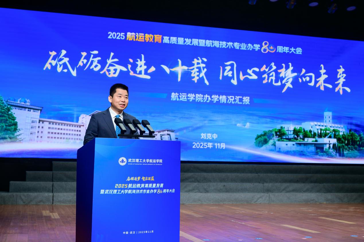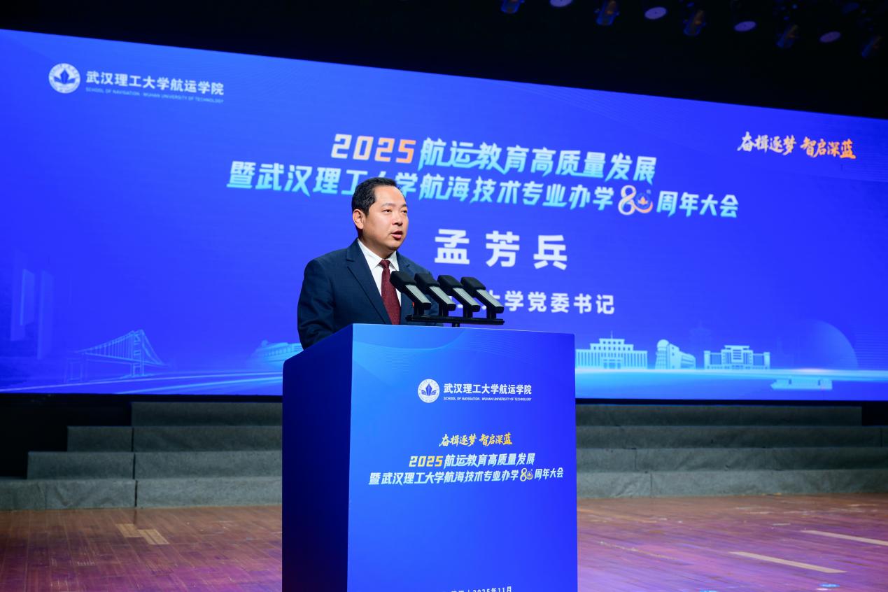 11月9日上午,航运教育高质量发展暨武汉理工大学航海技术专业办学80周年大会在湖北武汉举行,大会以“奋楫逐梦·智启深蓝”为主题。交通运输部原副部长何建中,中宣部文艺局原局长刘汉俊,原中国海运集团有限公司董事、总经理张国发,中国航海学会理事长、中国工程院院士严新平,校党委书记孟芳兵,副校长罗蓉、张笛,校务委员会副主任刘祖源等出席大会。航运行业企事业单位、部分高校代表、校友代表、学校有关单位负责人及环亚体育 师生参加大会。武汉理工大学环亚体育 党委书记侯俊主持大会。