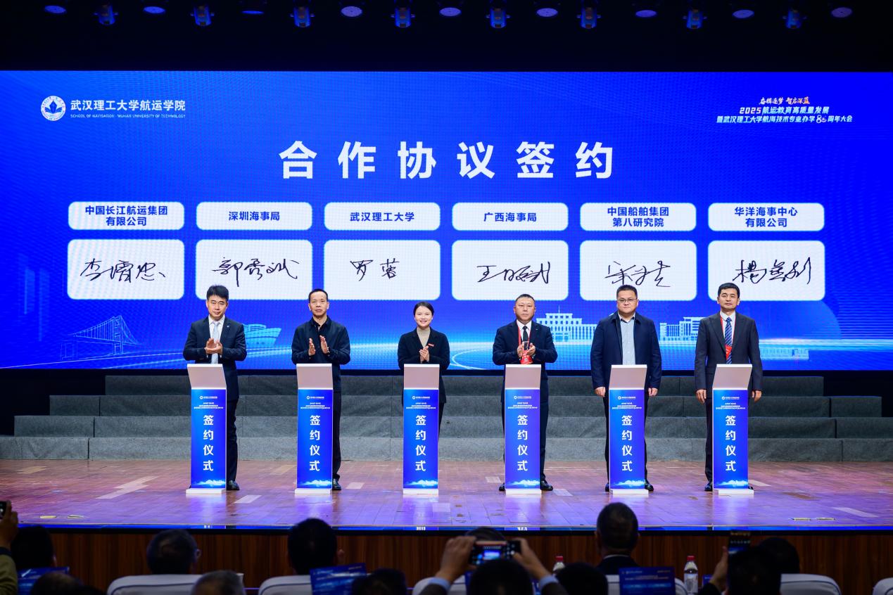 会上,广西海事局、深圳海事局、中国长江航运集团有限公司、中国船舶集团第八研究院、华洋海事中心有限公司5家单位分别与武汉理工大学签署合作协议。双方将进一步深化产教融合、校企合作,在共建科研平台、联合技术攻关、共享人才资源、促进学生实习就业等方面开展多层次、宽领域的务实合作,携手开创互利共赢、协同发展的新局面。